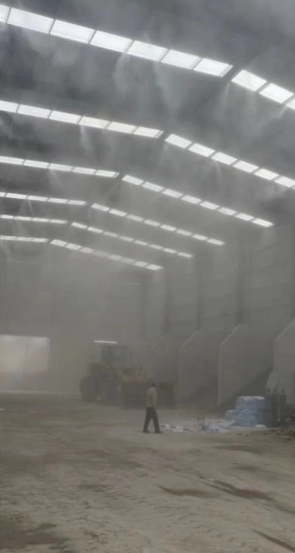 Due to the continuous raising of a large amount of dust that diffuses at all directions when the operation is conducted in the environment of the environmentally-friendly mixing station, if it cannot be controlled in time, the dust will be more than dozens or even hundreds of times of standard of the workshop specified by the state. It will not only cause serious harm to the physical and mental health of the operators, but also greatly increase the difficulty of cleaning operations. The solution we provide is equipped with a number of nozzles as required based on the situation in the field, thus to quickly absorb dust through strong adsorption capacity of the water mist particles, thereby forming a rapid dust fall, and preventing the spread of dust.